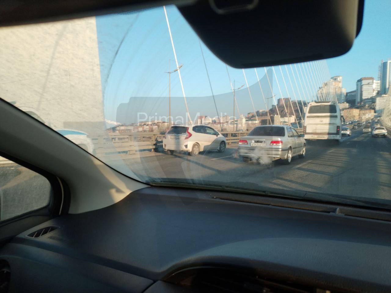 Пробка из-за аварии на Золотом мосту Владивостока растянулась до Катерной