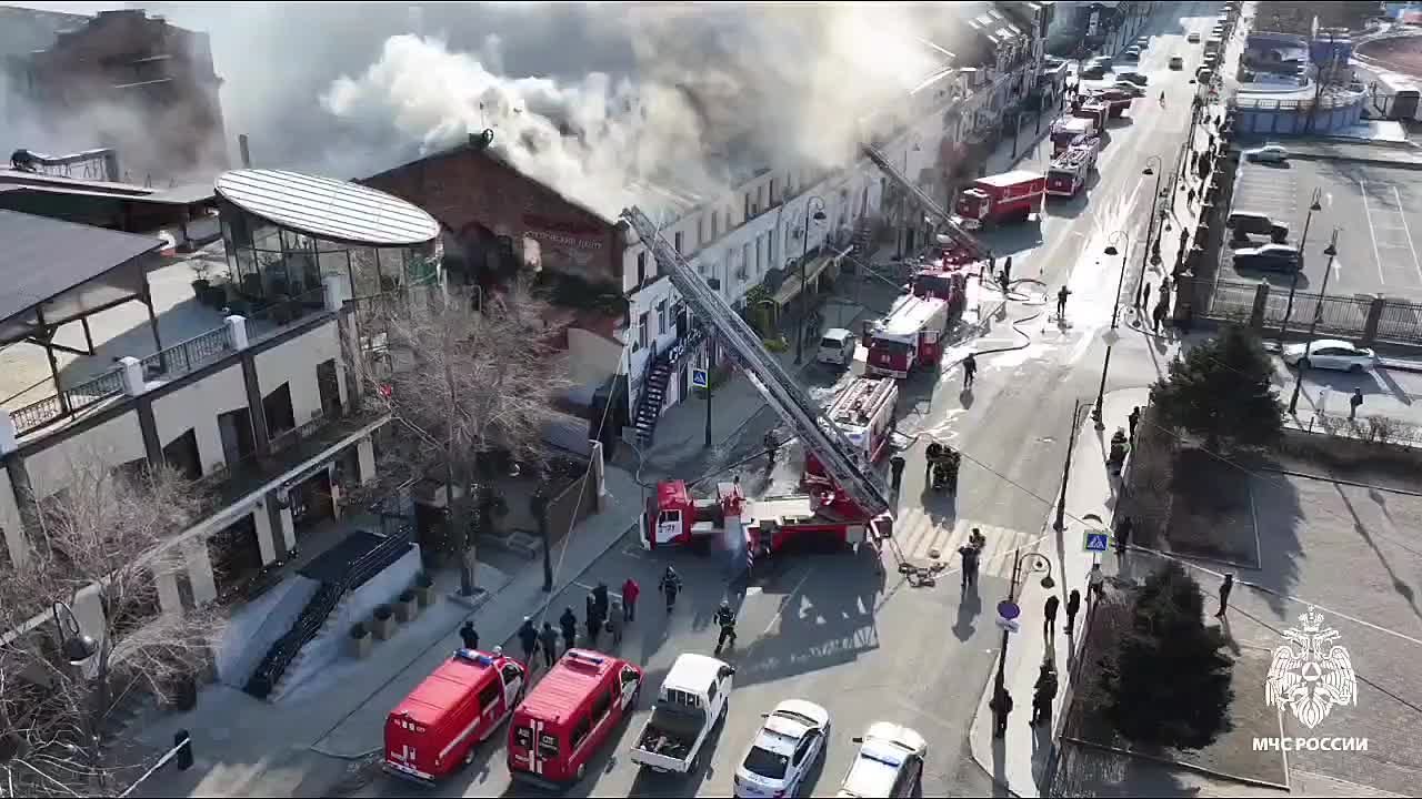 Тушение пожара в историческом здании на улице Пограничной, 12 длилось почти сутки. Огнем было охвачено почти 600 «квадратов», сообщают в МЧС Приморского края