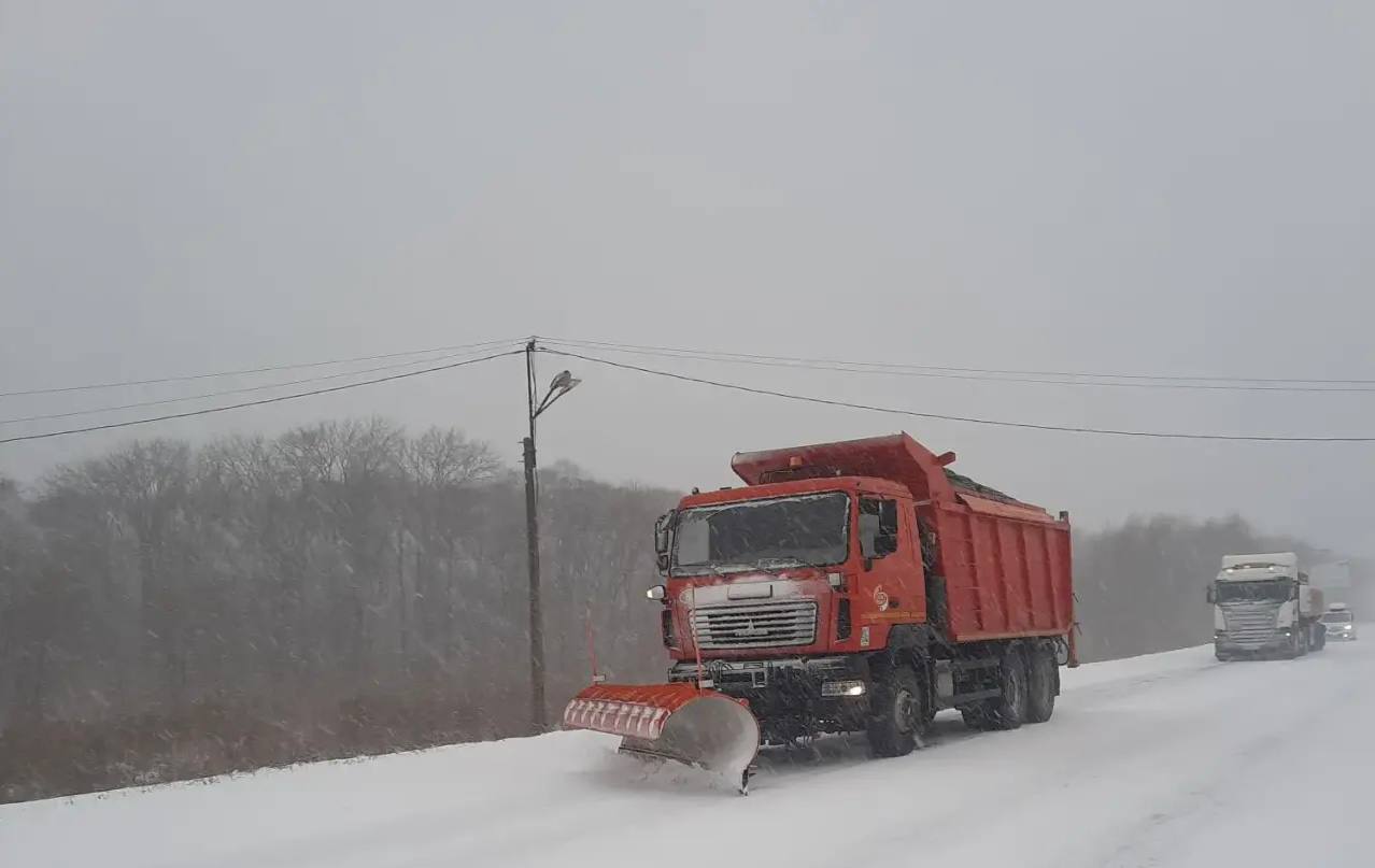 Специалисты филиала «Шкотовский» ведут очистку и обработку дороги Артем – Находка – порт Восточный с 82 по 100 километры