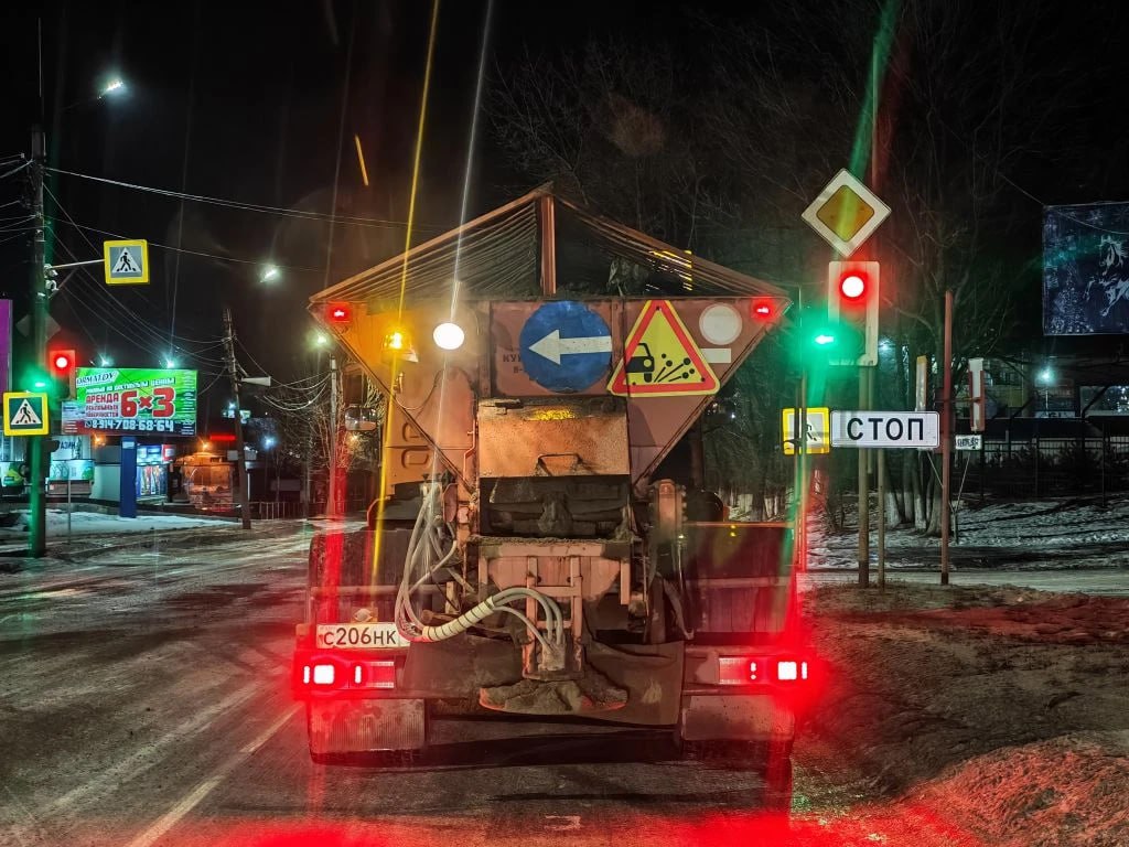 В настоящий момент и круглосуточно МКУ "ДЭУ" проводит обработку противогололедными составами: