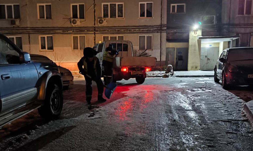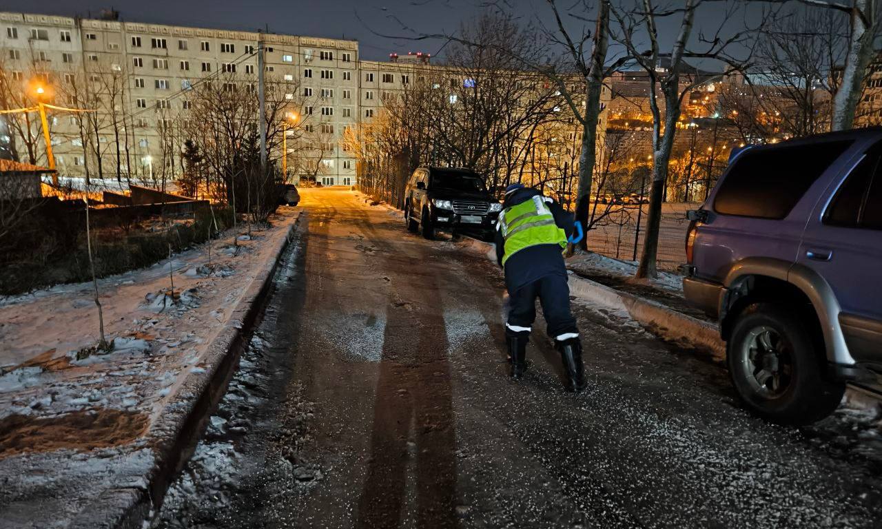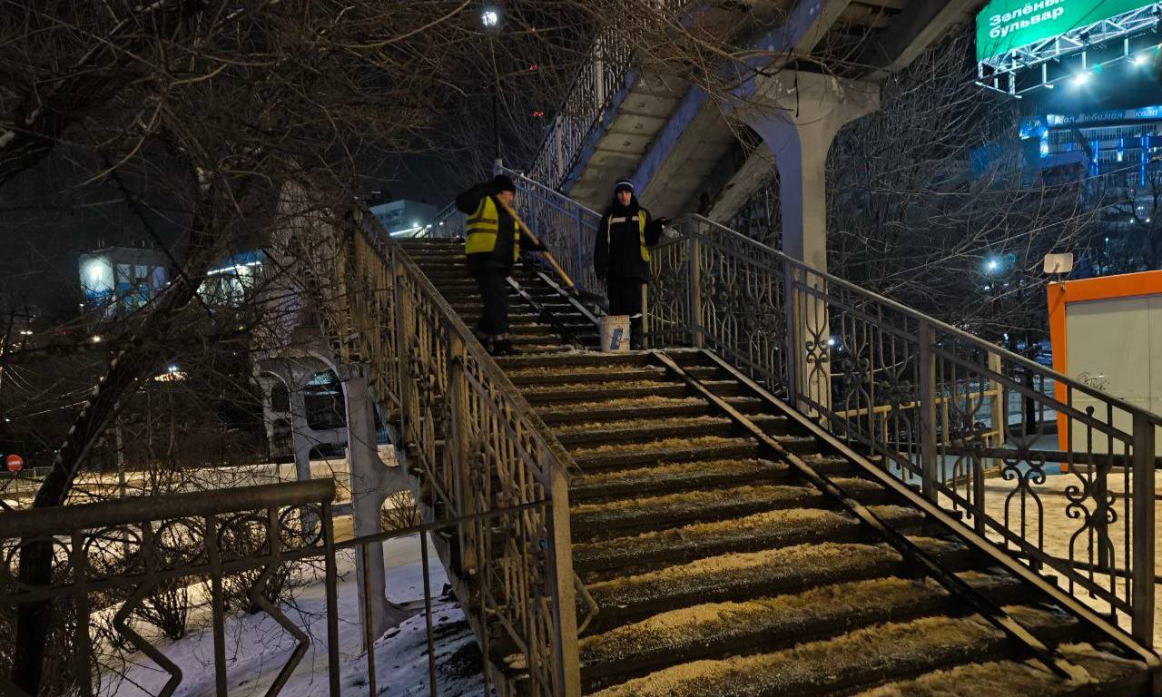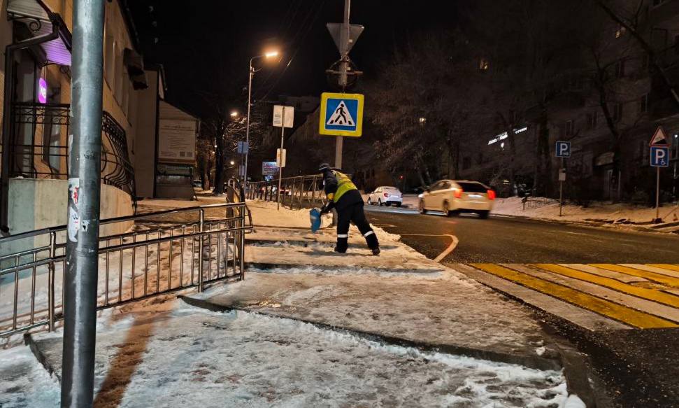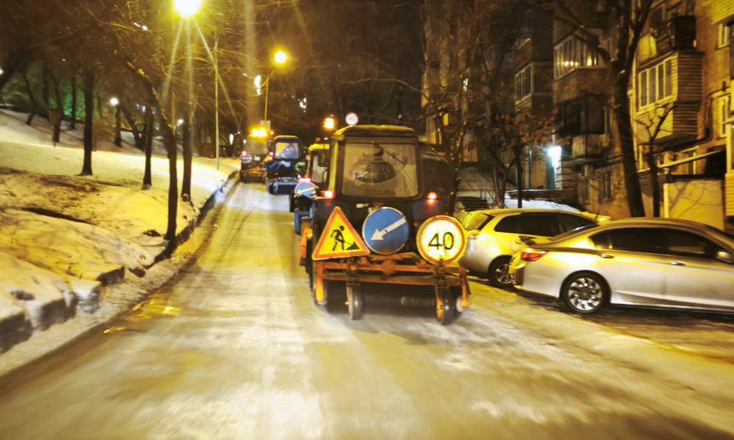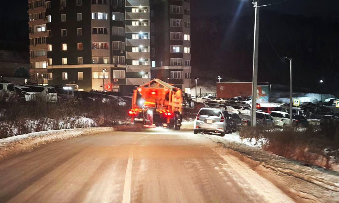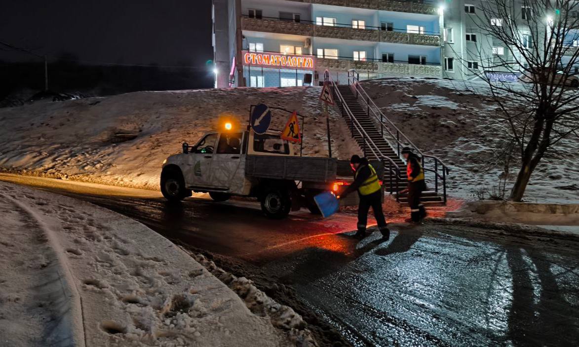 Бригады посыпали проезды на Жигура, Надибаидзе, Адмираоа Смирнова, Сабанеева, Океанском и Партизанском проспектах, Аллилуева, Майора Филиппова, Русской, Фонтанной, Давыдова, проспектах Красного Знамени и 100-летия Владивостока, Коммунаров, 50 лет ВЛКСМ, Светланской, Калинина, Олега Кошевого, Катерной, Прапорщика Комарова, объездная трасса Седанка – Патрокл, дороги острова Русский и другие участки города.