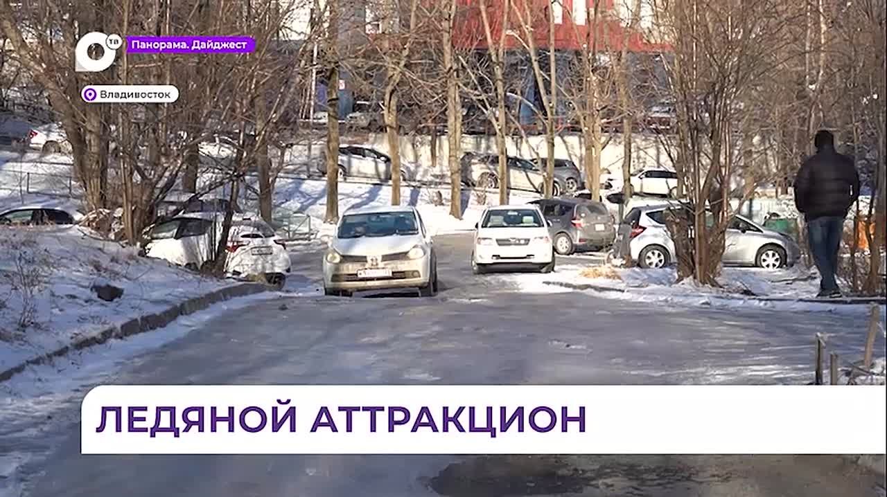 Ледяным аттракционом стало утро во Владивостоке