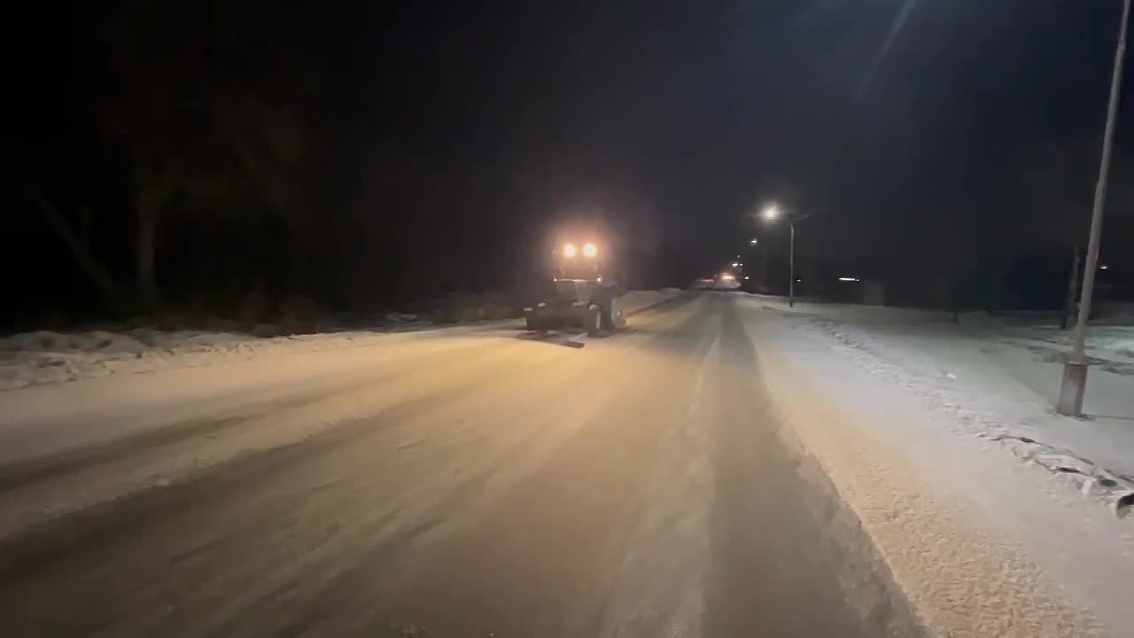 С раннего утра специалисты филиала «Чугуевский» очищали проезжую часть от снега между селами Новомихайловка и Соколовка Чугуевского округа