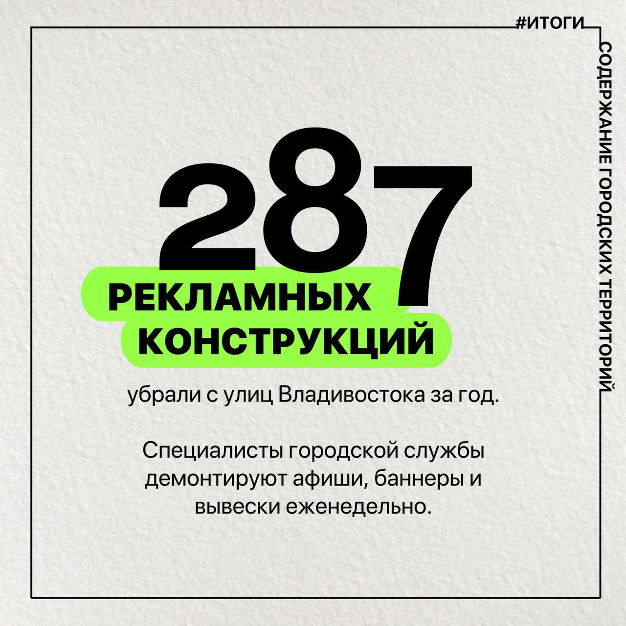 Еженедельные рейды позволили снять с фасадов зданий и остановок 287 баннеров, афиш и вывесок, установленных без соответствующих разрешений.