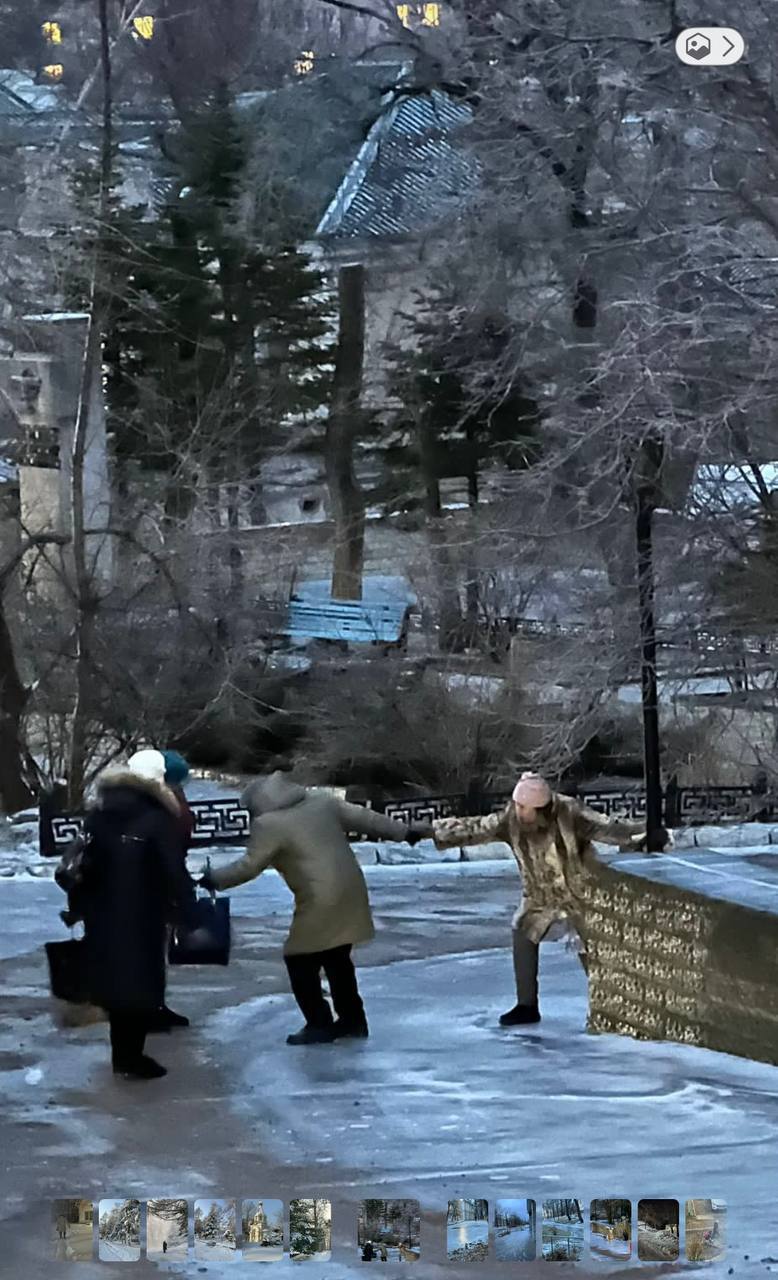 Горожане скользят кто как может — кто удерживается на ногах, а кто спускается сидя. Без падений тоже не обошлось: сегодня в травмпункты обратились около 50 человек. В краевом Минздраве отмечают, что резкого роста обращений нет и обстановка остается стабильной.