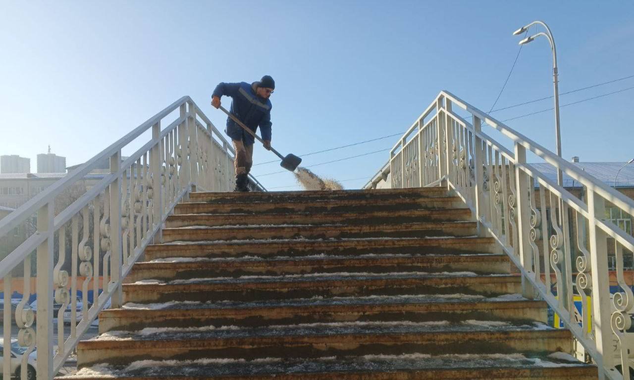 На улицах города сегодня работает 109 единиц спецтехники и 207 рабочих. Большинство тротуаров посыпают сухим реагентом "Бионорд" белого цвета, поэтому он не всегда заметен. На некоторых тротуарах остается "Шуга" — смесь льда, снега, воды и реагентов.
