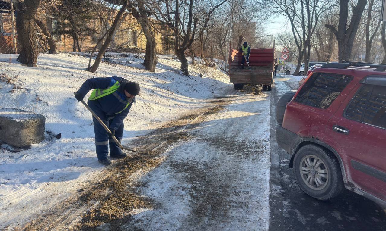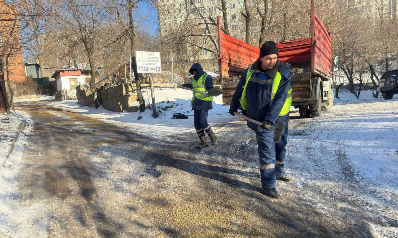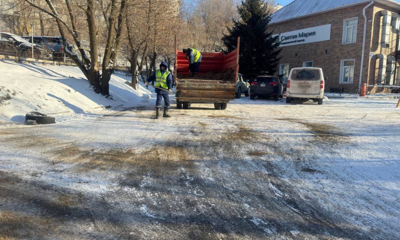 С помощью пескоразбрасывающих машин обработали Тобольскую, Маковского, 30, Нейбута, 11 – 17 и 27, Шепеткова, 40, Шишкина, 78, Шилкинскую, 6, Енисейскую, 4, 2-ую Строительную, 21, Добровольского, 35 и основные дороги.