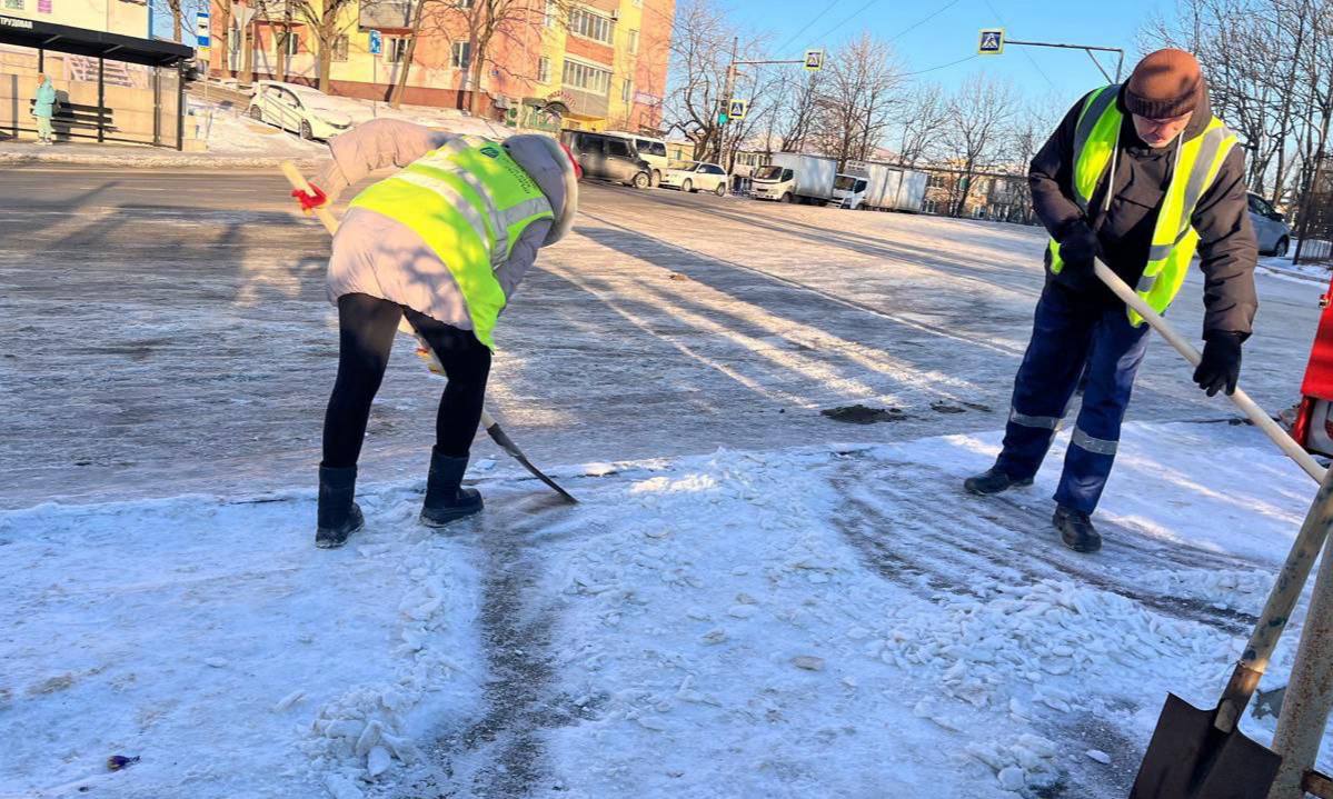 На проезжей части будут работать пескоразбрасывающие машины и тракторы с щетками, а на тротуарах бригады продолжат вручную убирать образовавшуюся шугу и распределять реагенты.
