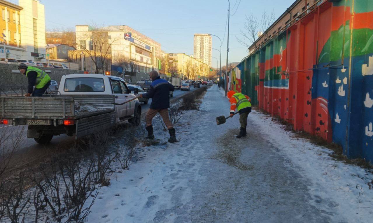 Сегодня днём ручную обработку тротуаров выполнили на Луговой, 72, проспекте 100-летия Владивостока, 121 и 133в, Океанском проспекте, 19, Маковского, 30, Экипажной, Нейбута, 27, Черёмуховой, 18а, в Светланском переулке, на Узбекской, Сабанеева, Котельникова, Университетском проспекте, Партизанском проспекте, Магнитогорской, 4, Уткинской, в Почтовом переулке, на Уборевича, Нерчинской, Кирова, 18а и 66, Енисейской, 7а, Калинина, 11а/1, Аллилуева, 5, проспекте Острякова, 26, Интернациональной и других адресах.