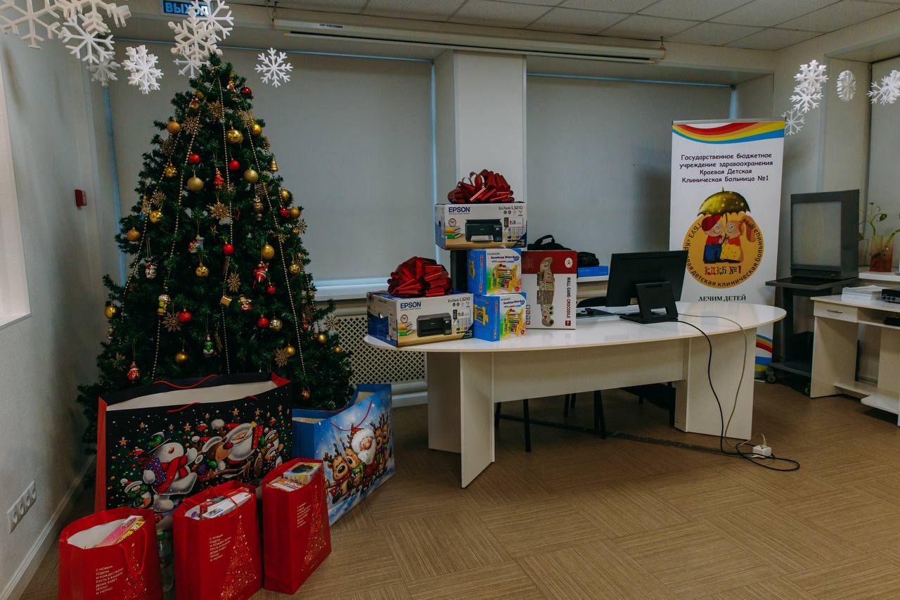 А самое главное — никто не остался без подарка! Даже сотрудники медицинских учреждений получили нужные вещи для своей работы: многофункциональные принтеры, телефоны и проекторы. Ведь забота должна быть всесторонней, особенно там, где дети ждут чудес.