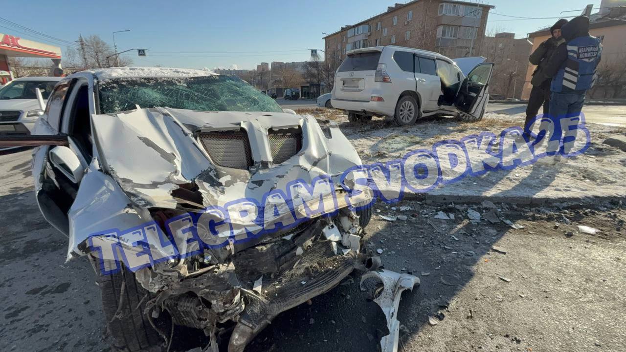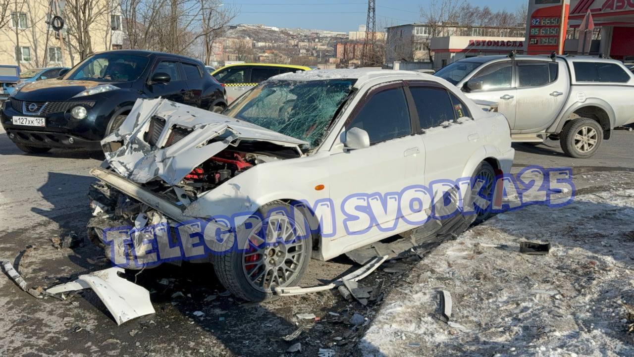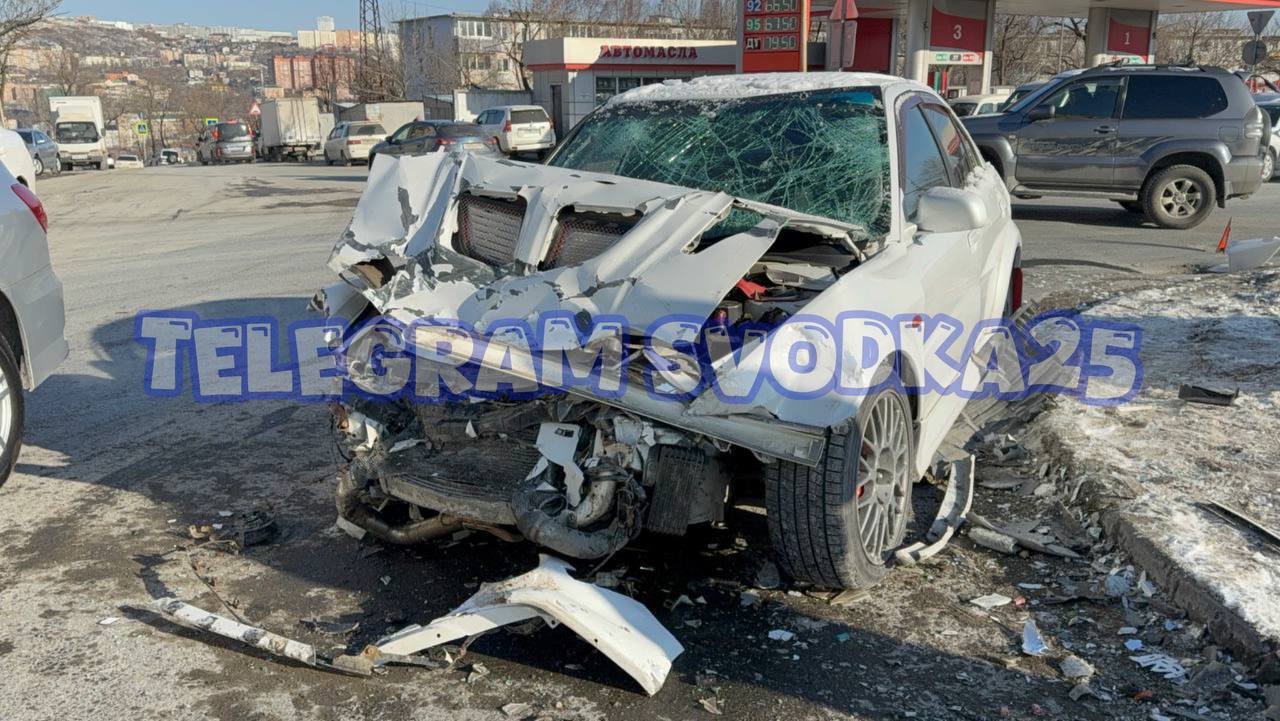 Во Владивостоке на Запорожской произошло жесткое ДТП — один авто разбился, другой на клумбе