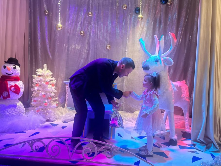 Сказка продолжилась и после спектакля. Депутат Законодательного Собрания Приморского края Павел Маноконов лично вручил каждому ребёнку сладкий подарок и самые тёплые пожелания.