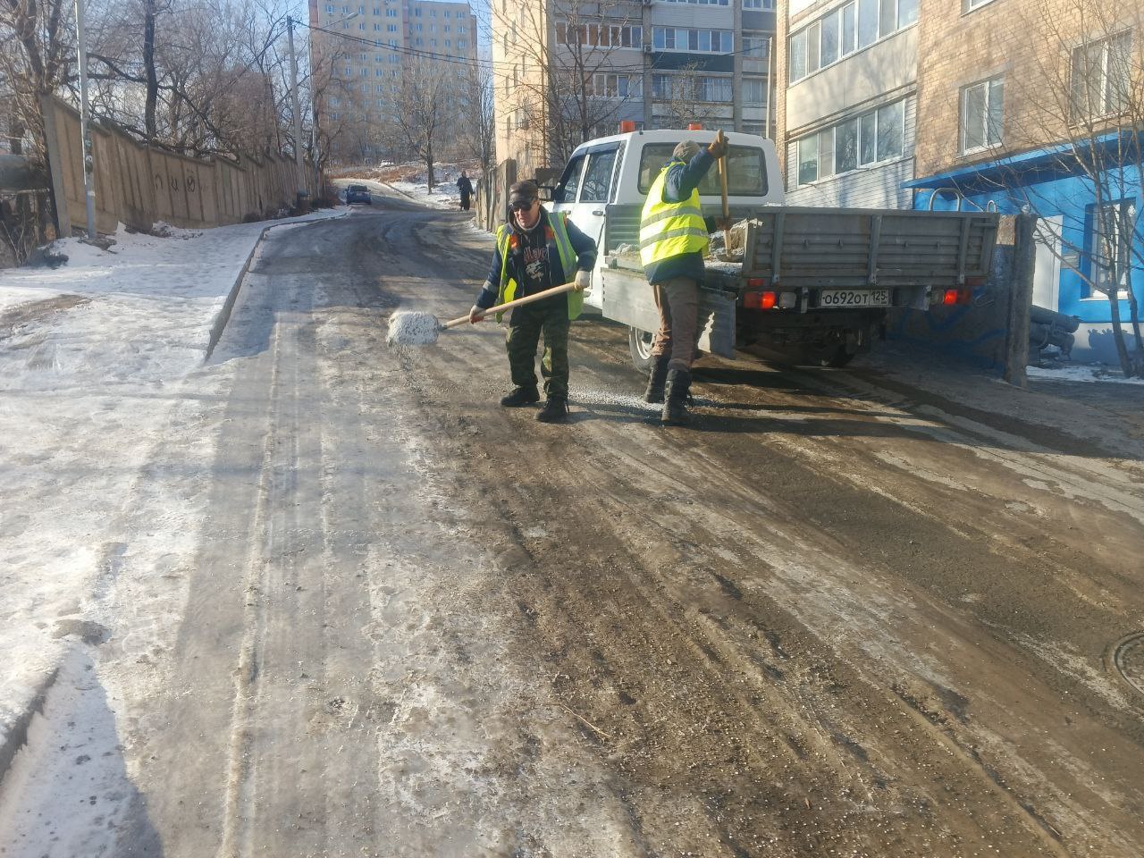 Подъезные пути к площадкам для сбора ТКО будут обработывать песко-соляной смесью на Каплунова, 15, Ладыгина 2д, Пологой, Аллилуева, Луговой, 49, Славянской - Махалина, Уборевича, 15 и 17, Океанском проспекте, 90, участке от Партизанского проспекта до Отлогой, 10, от Овчинникова, 10 до Фирсовской развязки.