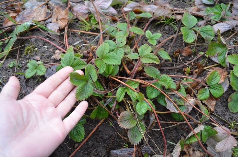 Первый шаг к здоровым растению — это уборка грядки. Необходимо тщательно удалить старую мульчу и сухие листья, делая это осторожно, чтобы не повредить нежные корни кустов. Проверив, как расположены корни, можно при необходимости окучить растения, обеспечивая их защиту от холода.