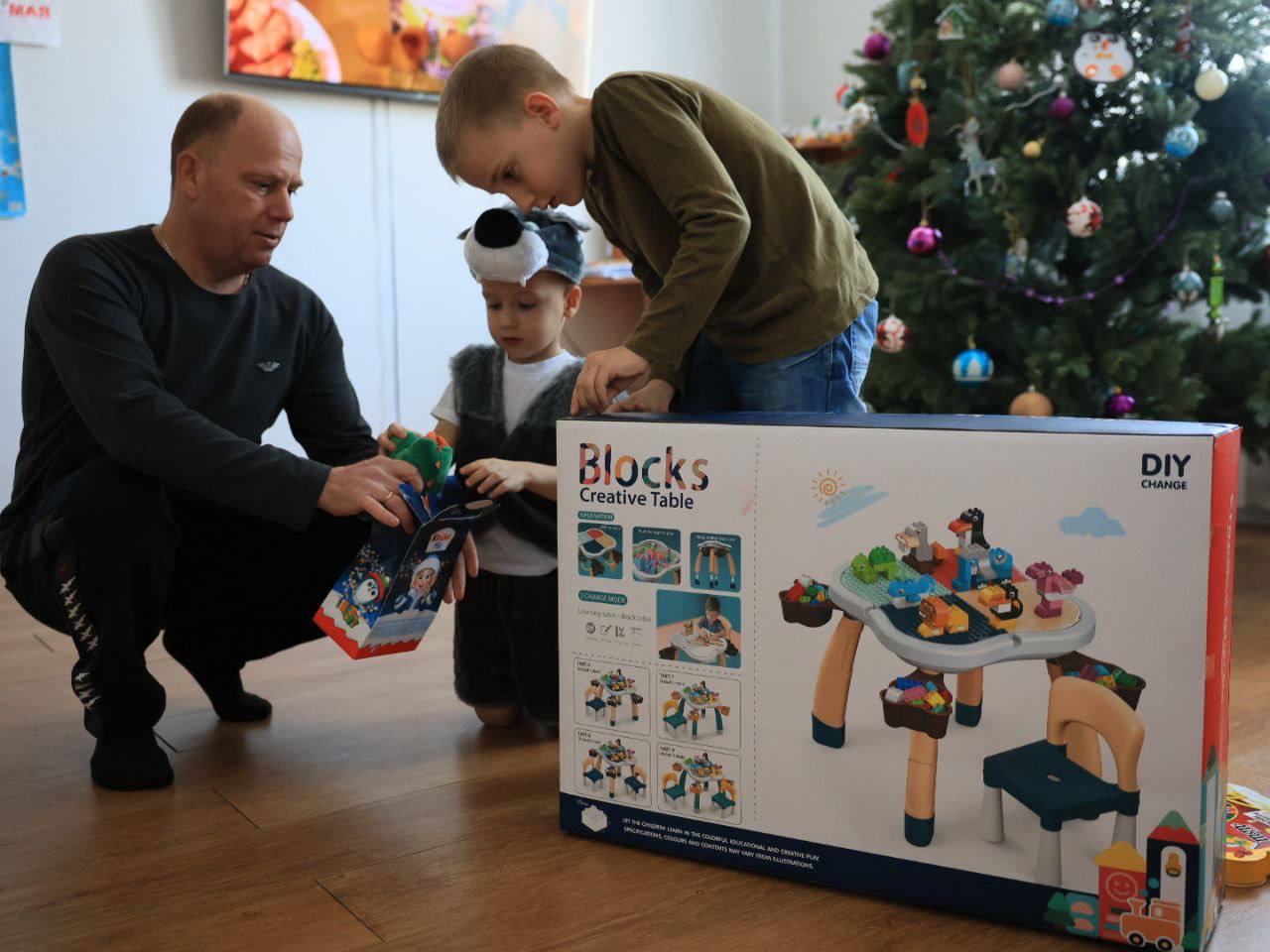 Богдану всего три года, его мечтой был игровой стол. Я не мог не выполнить это трогательное желание! А его 9-летний брат Никита получил конструктор.