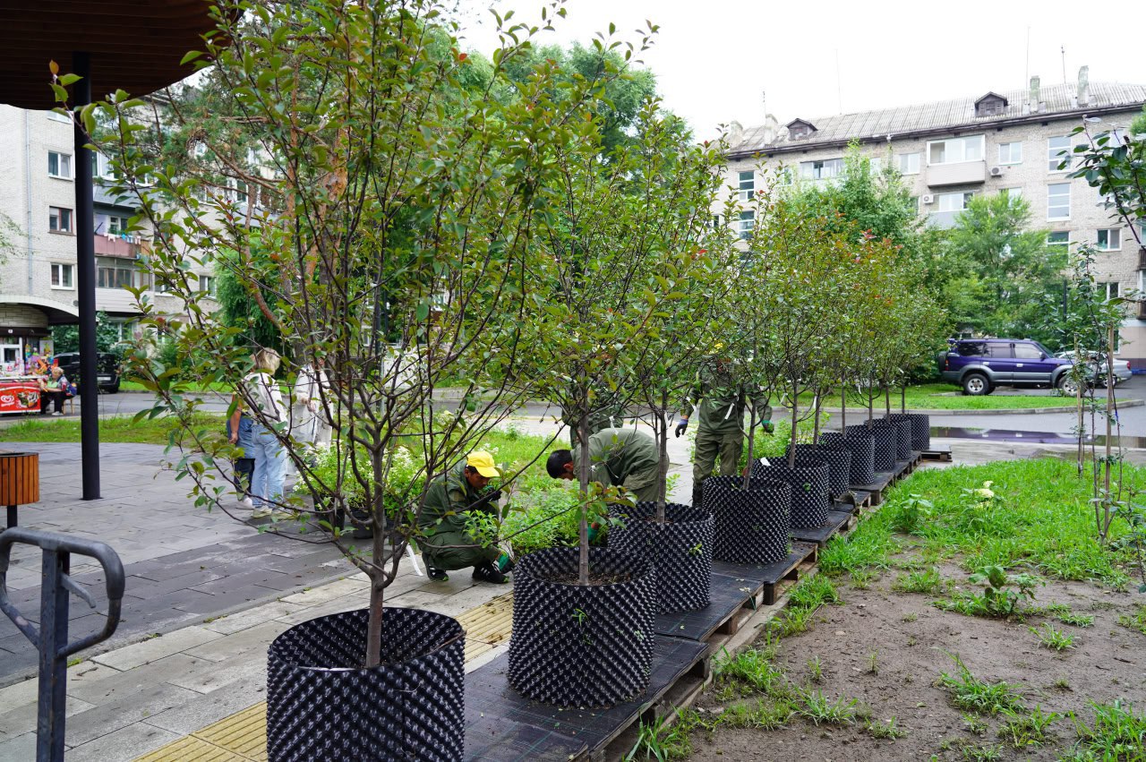 Также по отдельному контракту подрядчики выполнили озеленение на ул. Плеханова. Здесь высадили эффектные растения, которые украсят бульвар в разные сезоны: яблони, сирень, гортензии.