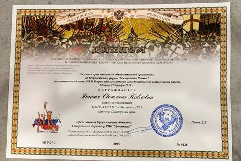 Ученица 7 класса находкинской средней школы №7 «Эдельвейс» Маргарита Бухмиллер достойно представила Приморский край и родной город. Её исследовательская работа «Антидот для школьника в условиях развития цифровой амнезии», посвящённая разработке когнитивных приёмов для развития памяти и мышления, была высоко оценена экспертным жюри.