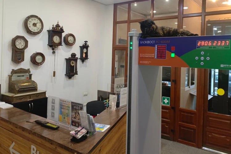 После гибели прежней кошки-смотрителя в музее Арсеньева срочно искали новую защитницу от грызунов. Так появилась угольно-черная Василиса. Она ведет себя достойно: экспонаты не трогает, гостей не пугает, но иногда эффектно проносится по залам. У Василисы есть любимые места — большое окно и рамка металлодетектора, откуда удобно наблюдать за людьми.