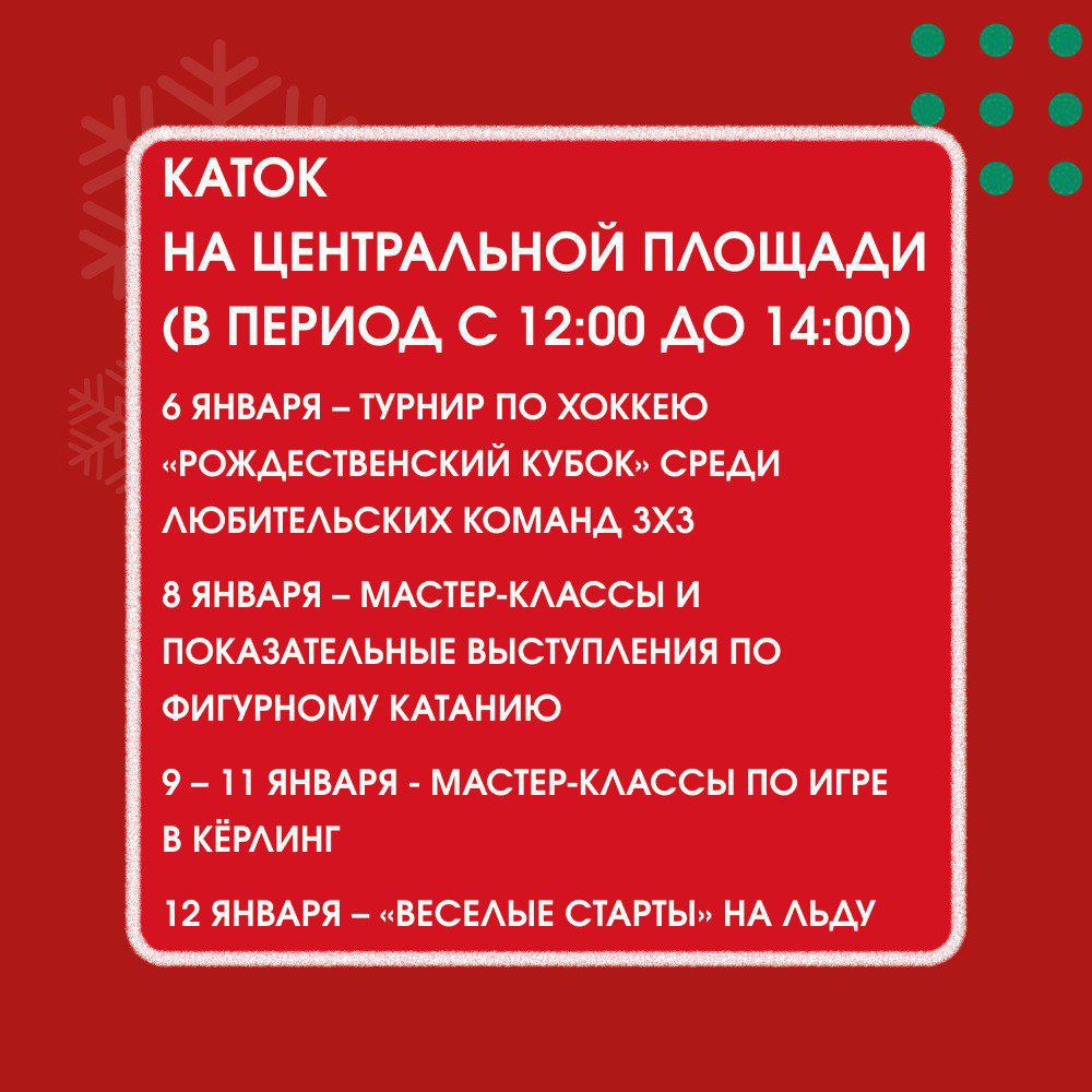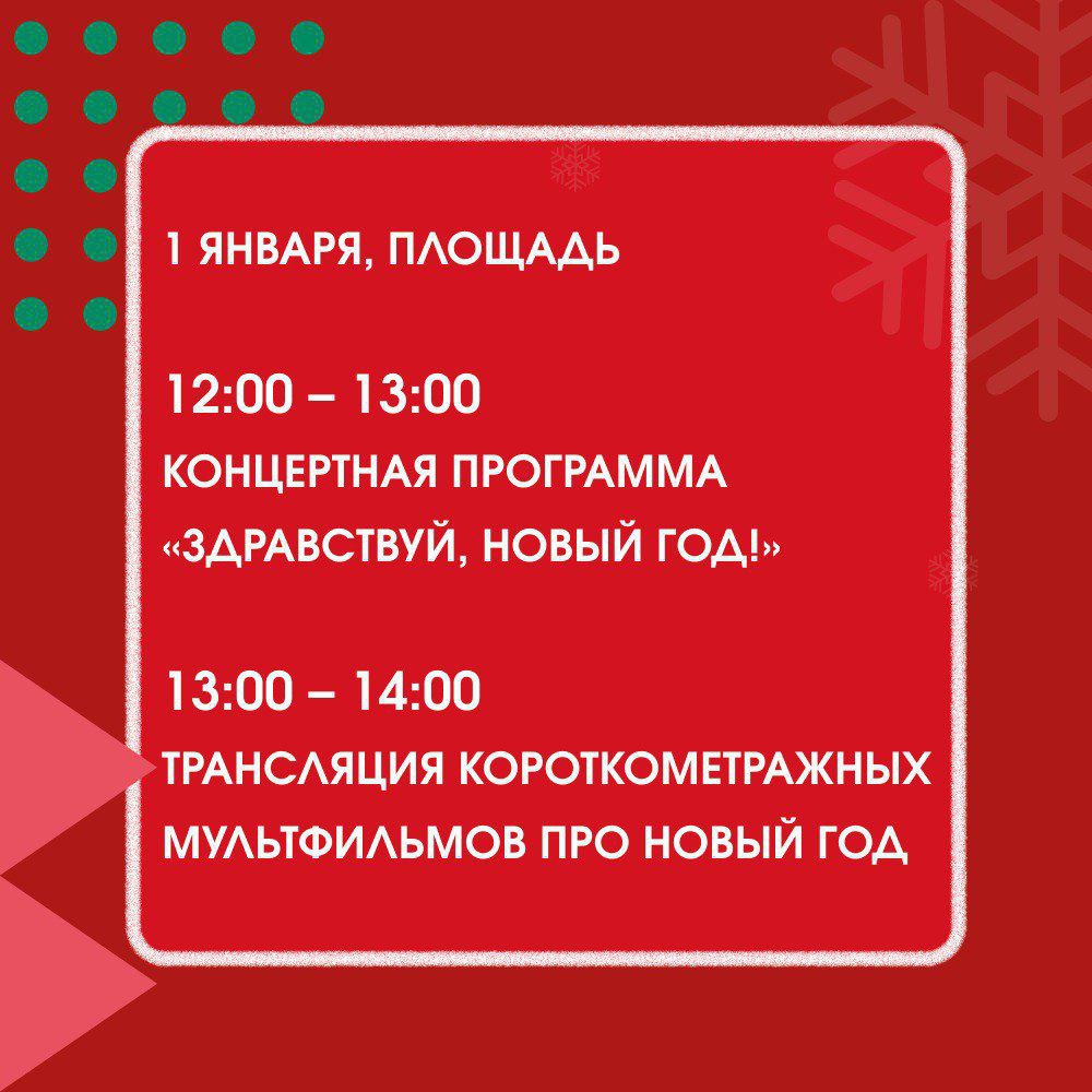 С 30 декабря по 11 января в городе пройдут концерты, народные гуляния, спортивные, детские программы и выставки. Поучаствовать в них приглашают всех желающих.