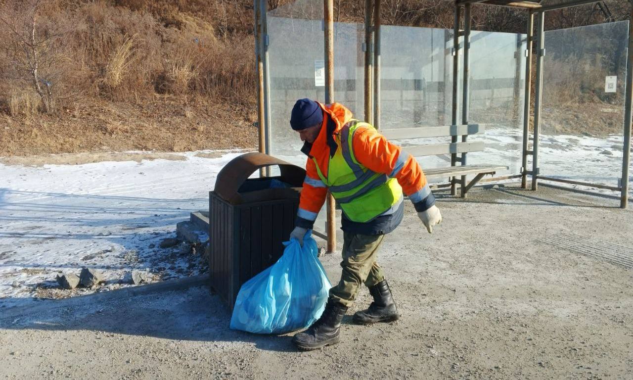 Круглосуточно бригады городской службы собирают и вывозят случайный мусор с автобусных остановок, несанкционированные свалки, а также убирают муниципальные контейнерные площадки в Советском районе Владивостока.
