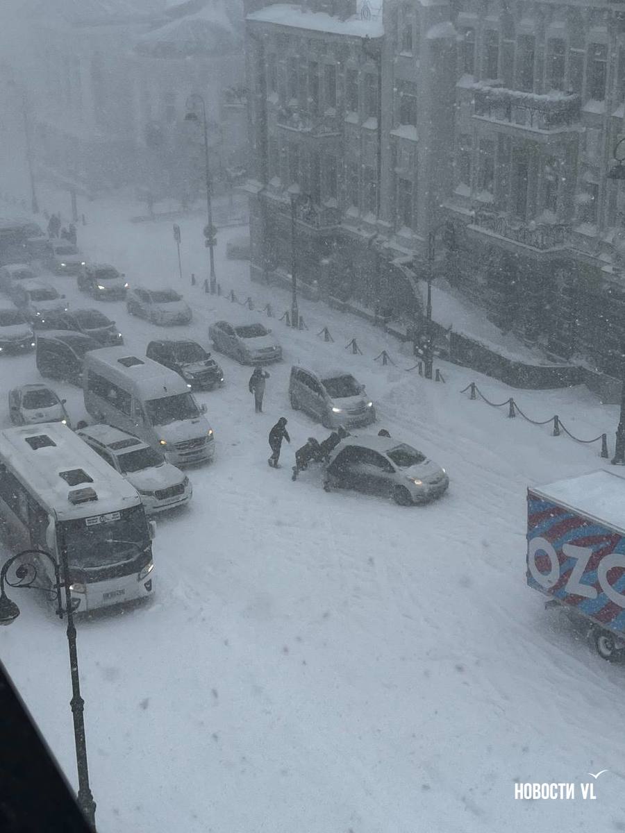 Машины и автобусы не могут подняться от площади по Океанскому проспекту