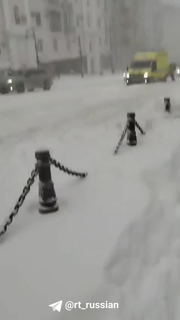 Транспортный коллапс во Владивостоке. За сутки уже выпала месячная норма осадков, и метель не прекращается.