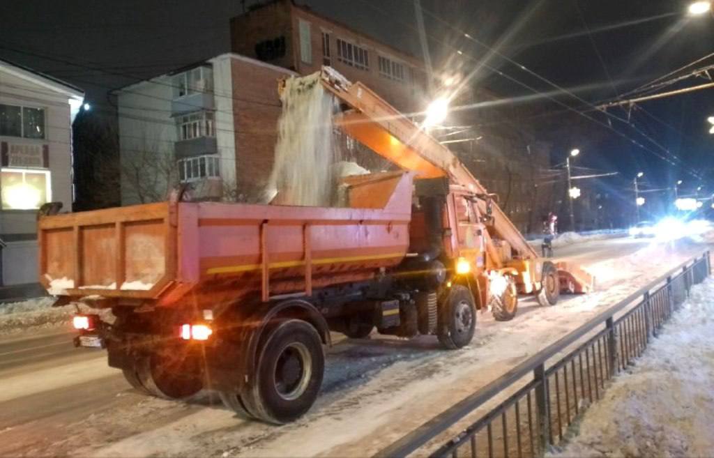 За минувшую ночь собрано и вывезено на полигон 4376 кубометров снега. Это 219 КамАЗов. Всего же эта цифра уже превышает 10 000 кубометров.