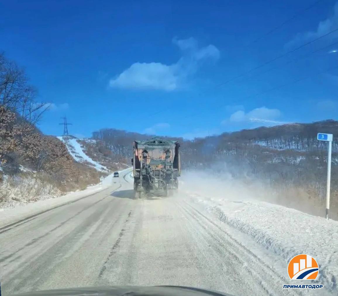 Снегоуборку и обработку проезжей части ведут дорожники между селами Романовка и Анисимовка Шкотовского округа