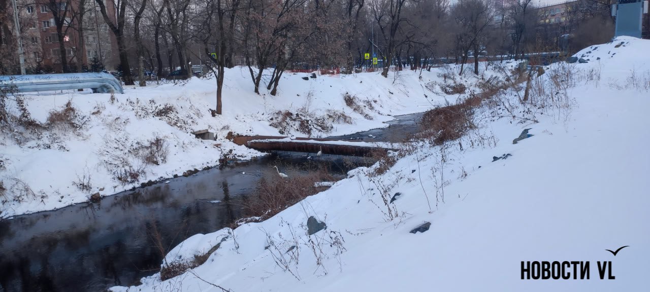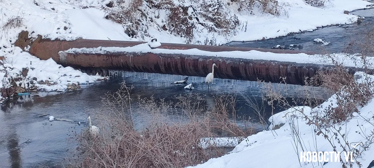 На Второй Речке в районе «Парка Победы» обосновались две цапли.