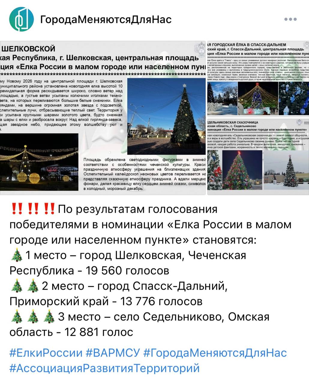 Добрый вечер, Друзья!. В очередной раз Мы доказали, Наша ёлка самая лучшая и заняли 2 место в конкурсе «Ёлка России» Спасибо всем кто принимал участие, гордость берет за Нашу малую родину!
