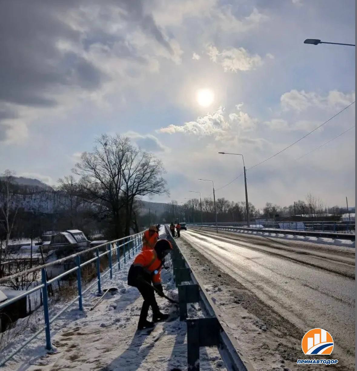 Также дорожники очищают тротуары от снега на 39 километре Находка – Лазо – Ольга – Кавалерово