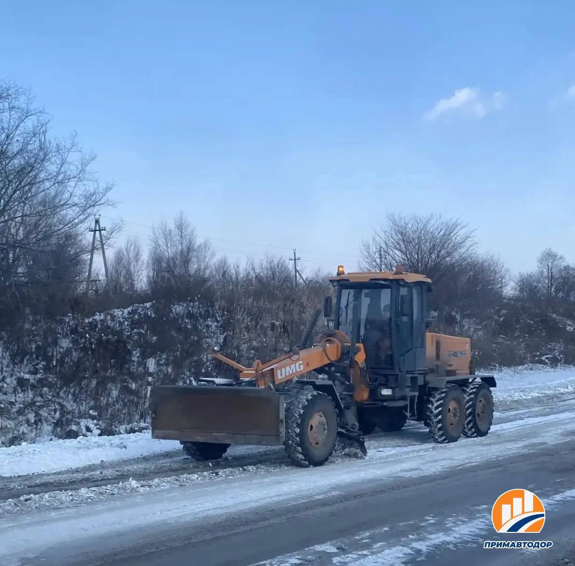 Филиал «Партизанский» Примавтодора выполняет очистку обочин от снега на дороге Артем – Находка – порт Восточный со 140 по 168 километры