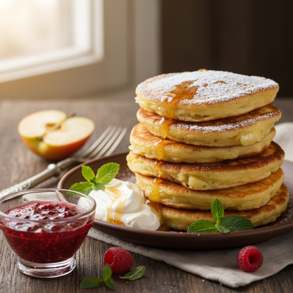 Сервировать оладьи лучше всего горячими, они прекрасно гармонируют со сметаной, медом или вареньем. Подобное наслаждение подарит вам уют в дни, полные прохлады и осенней свежести. Нежные, ароматные и очень быстрые – такие яблочные оладьи обязательно порадуют даже самых привередливых гурманов!