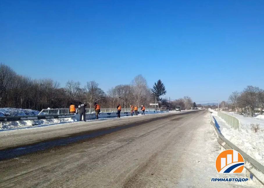 со 178 по 195 километры выполняют очистку от снега барьерного ограждения и полос безопасности на мостовых сооружениях