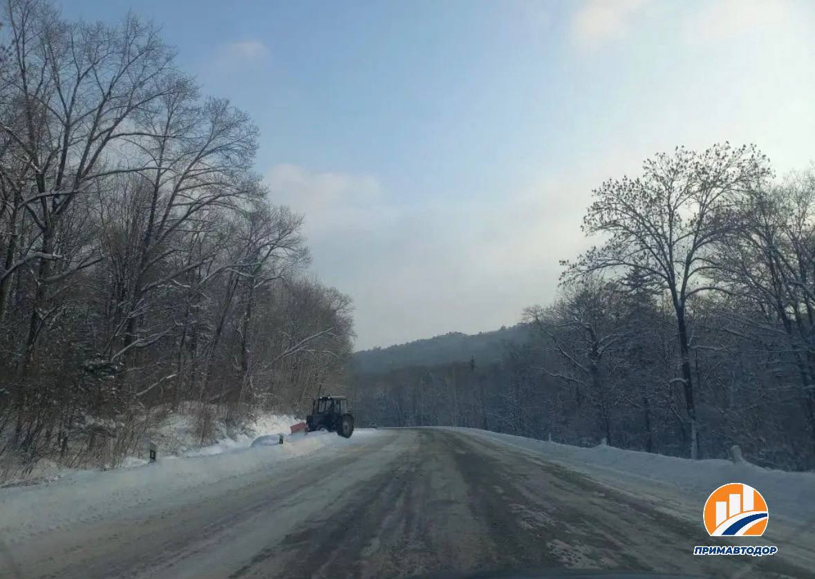 со 187 по 155 километры ведут уборку снежных валов, а также очистку от снега обочин и сигнальных столбиков