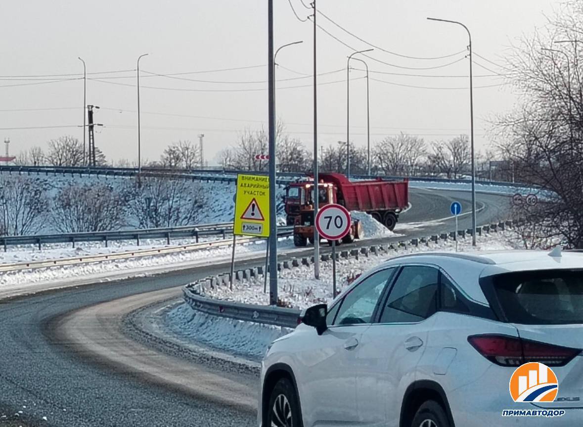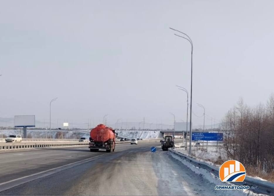 Филиал Примавтодора «Надеждинский» ведет работы по очистке барьерного ограждения и обочин проезжей части от снега на дороге Подъезд к аэропорту Владивосток