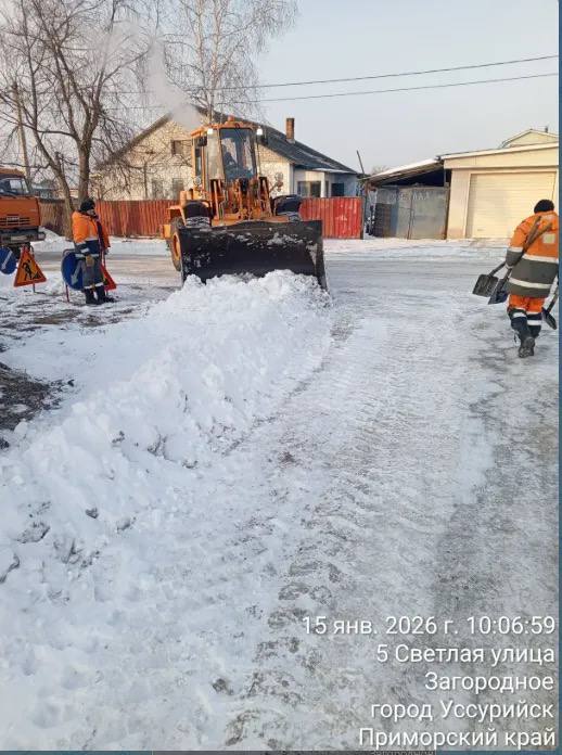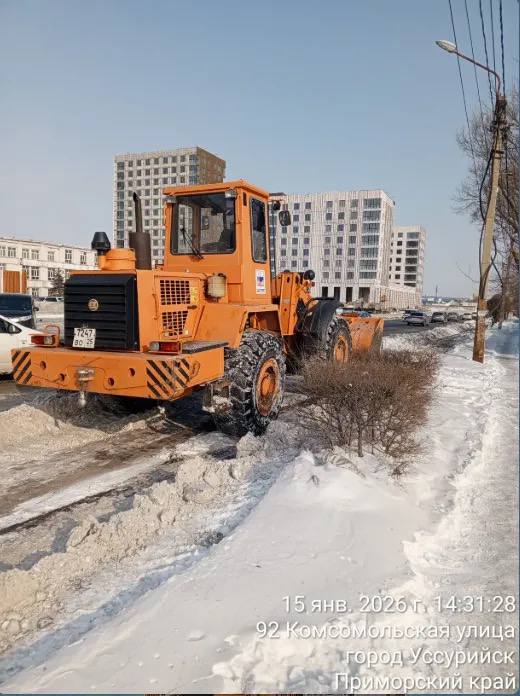 В Уссурийске в непрекращающемся режиме производятся работы по очистке территории округа от снега.