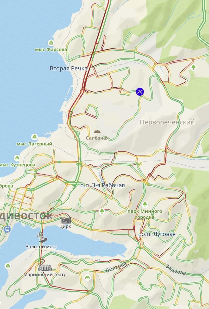 К этому часу пробки на дорогах Владивостока оцениваются в 7 баллов.