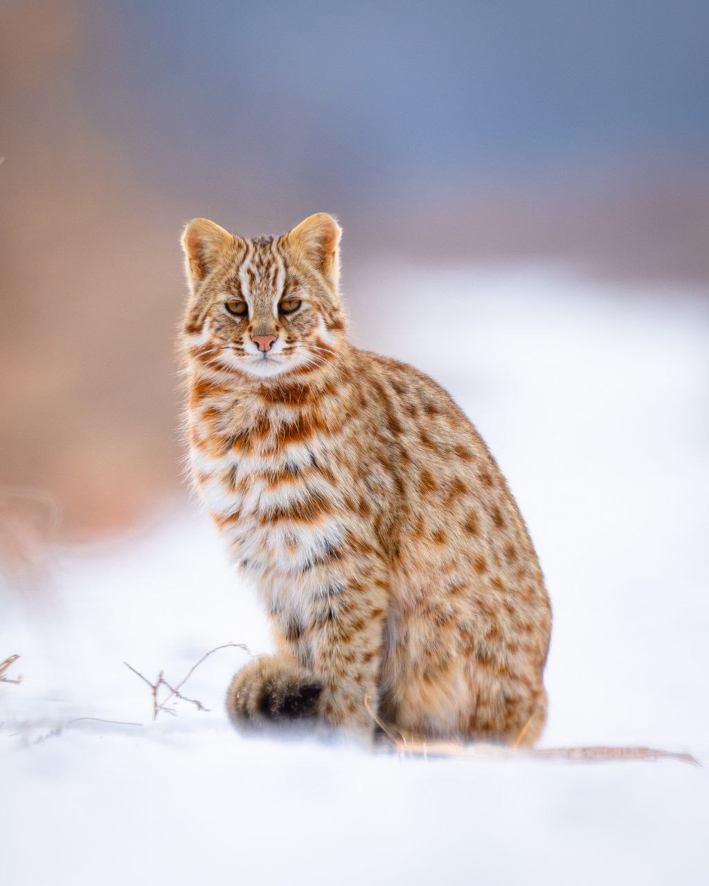 Серия снимков показывает зимнюю охоту: кот замирает, прижимается к снегу, вслушивается в каждый шорох и молниеносно бросается на добычу. Такое «мышкование» он повторяет десятки раз в день, полагаясь на безупречную реакцию и осторожность. Пока зверь был увлечён охотой, он не замечал человека, но, уловив присутствие фотографа, мгновенно исчез — типичное поведение для этого вида.