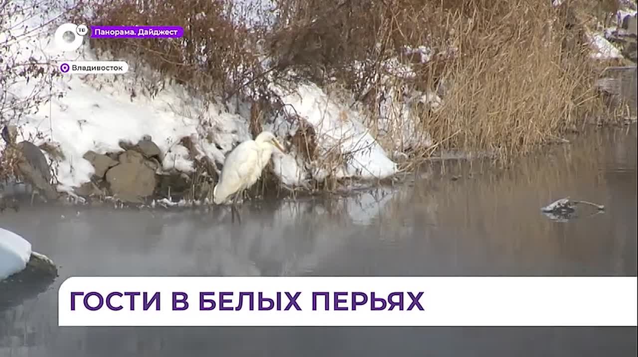 Две цапли обосновались у воды в районе Второй Речки во Владивостоке