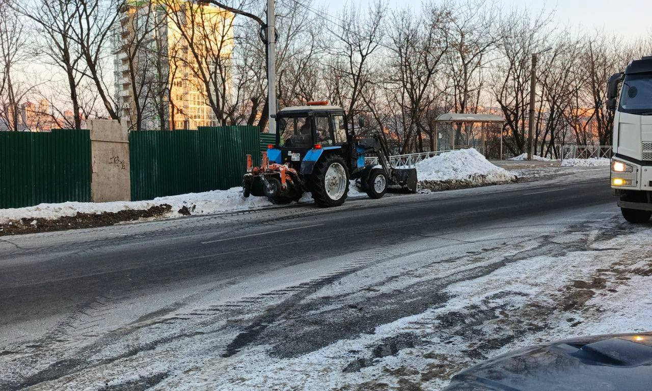В Советском районе – уборка автобусных остановок по району и расчистка проездов на Узбекской. Вывоз снега с проспекта 100-летия Владивостока.