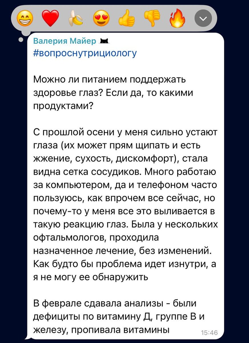 Благоприятно повлияет на здоровье глаз и коллаген, который улучшает увлажнение слизистых. Его можно получить из костного бульона, холодца и достаточного количества белка в рационе.
