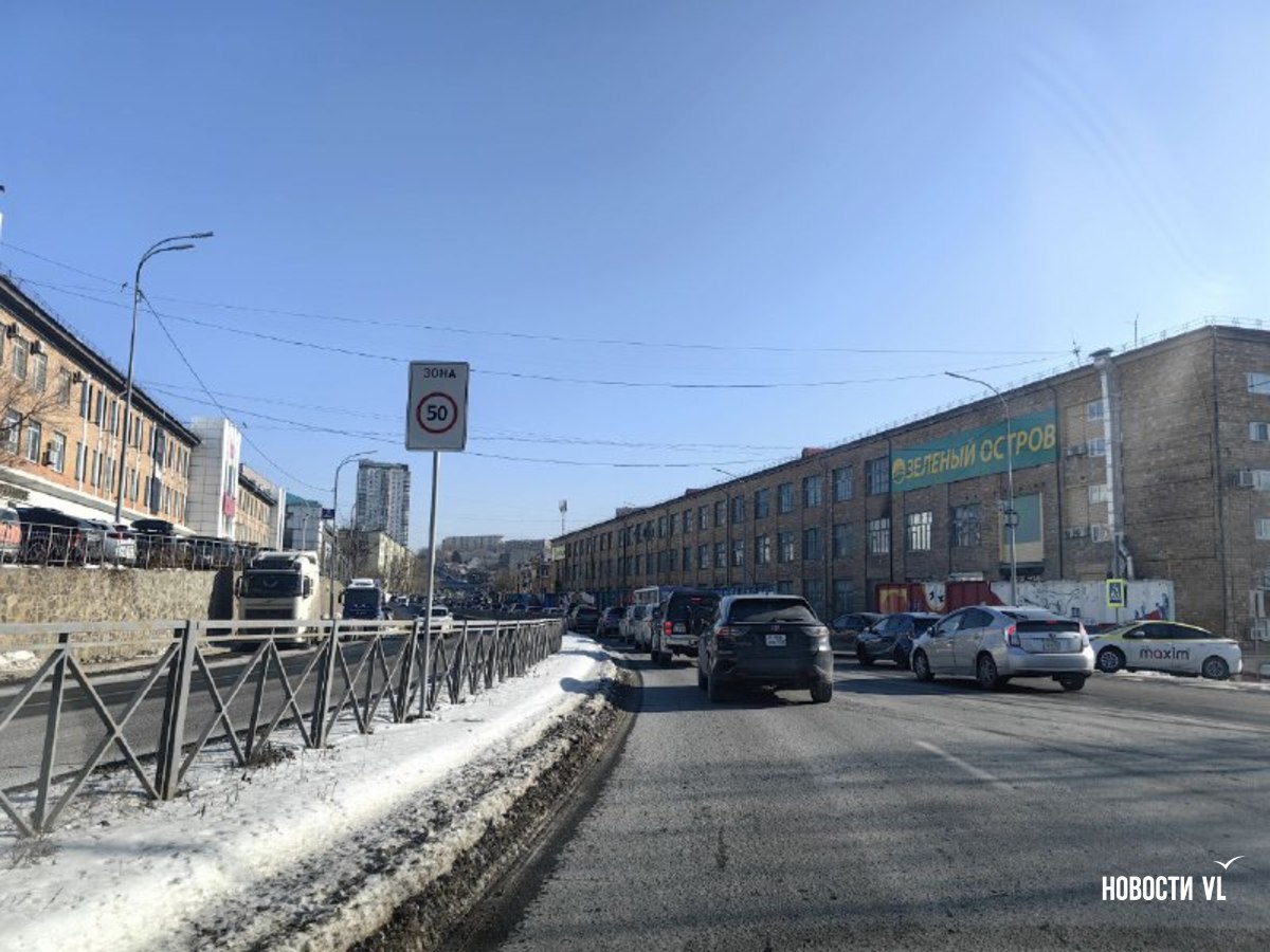Две полосы в сторону аэропорта оказались перекрыты. Обехать можно через Артём. Собралась большая пробка.