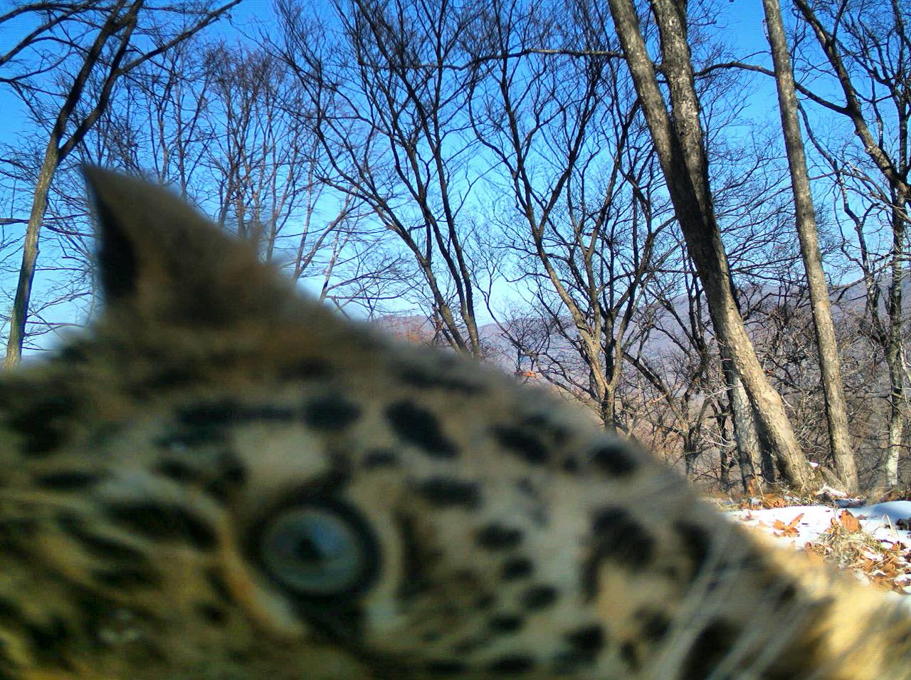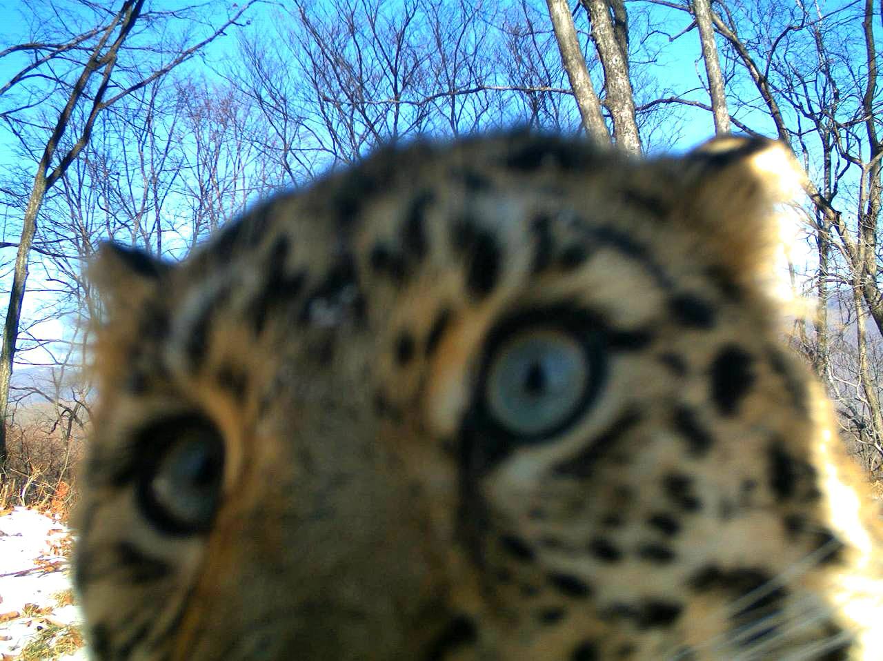 Леопард Leo 22M попал в объектив фотоловушки во время исследования территории