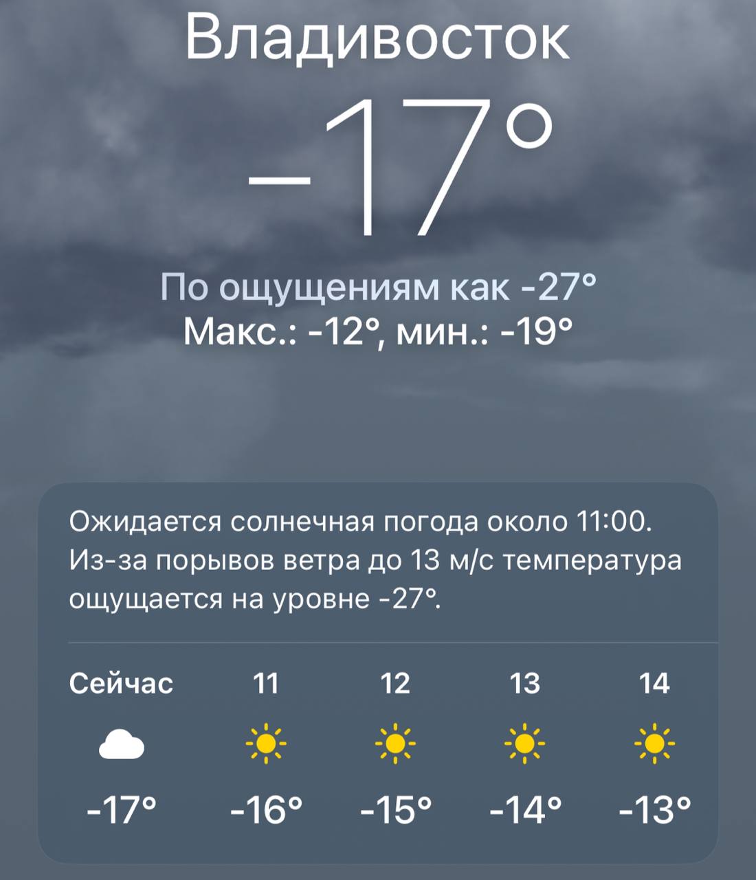 Сейчас в краевой столице 17 °C, но из-за ветра ощущается как 27 °C.