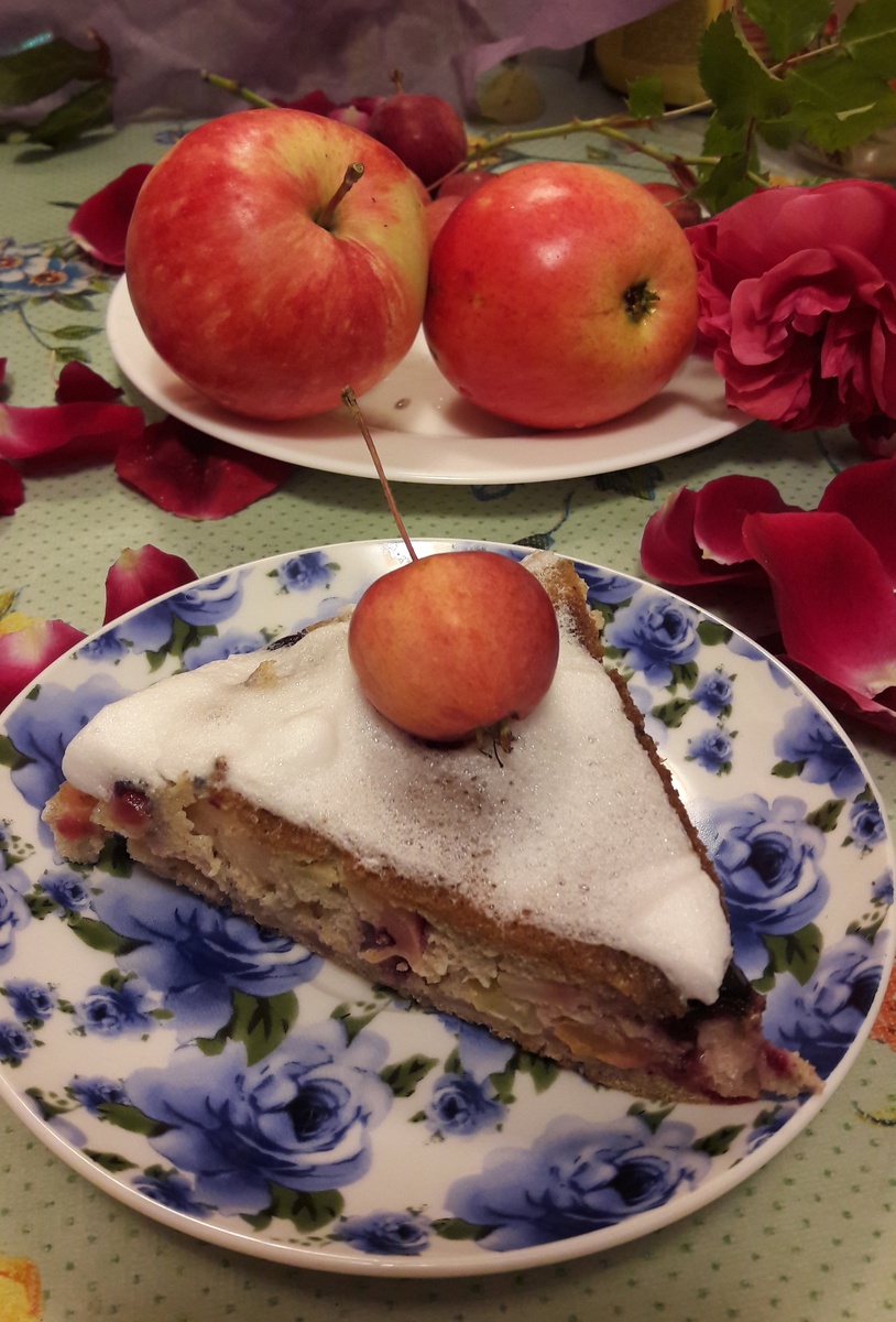 И вот, после всего процесса, ваша шарлотка готова! Подайте ее к чаю с изысканной легкостью, добавив сверху взбитые белки с стевией — такая «вишенка на торте» прекрасно дополнит десерт.