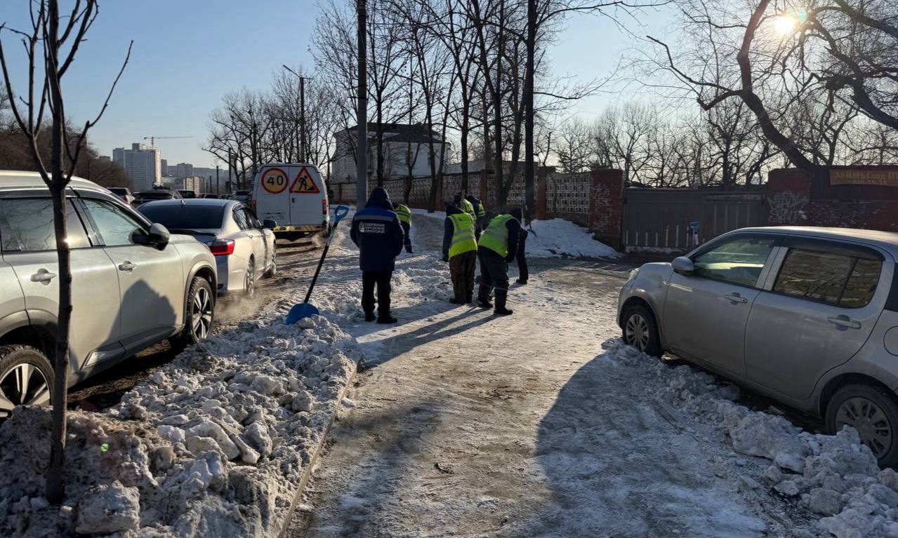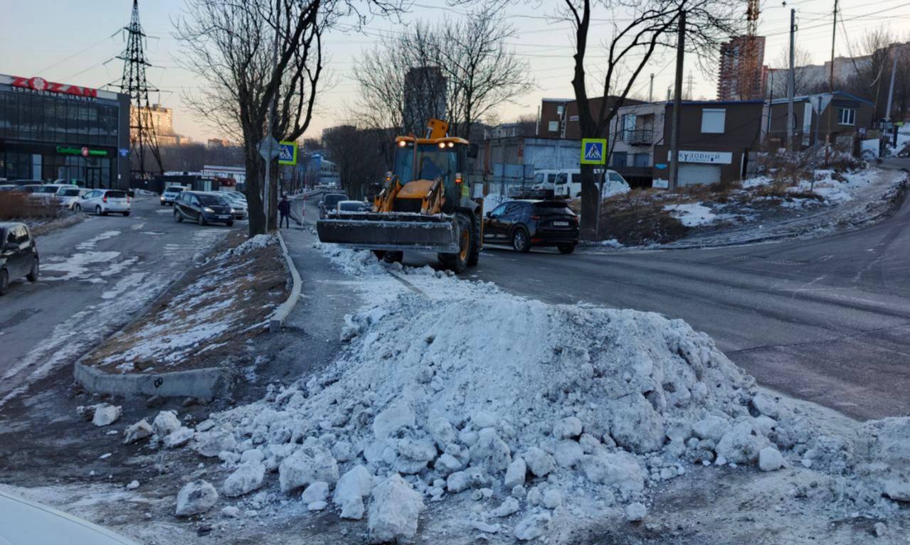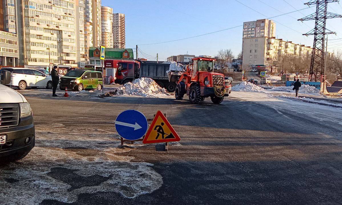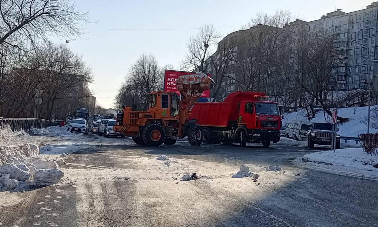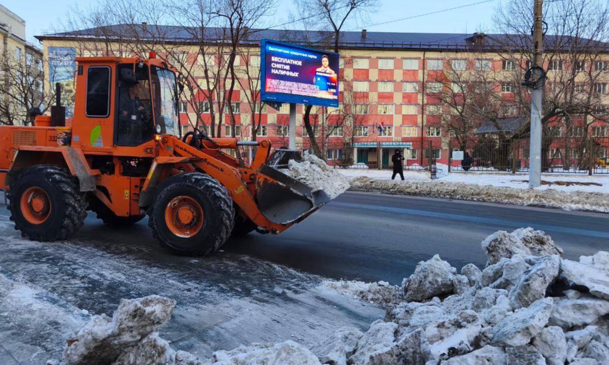 Советский район — очистка тротуаров и пешеходных зон на проспекте 100-летия Владивостока и улице Русской; комплексный вывоз снега на улице Девятой.