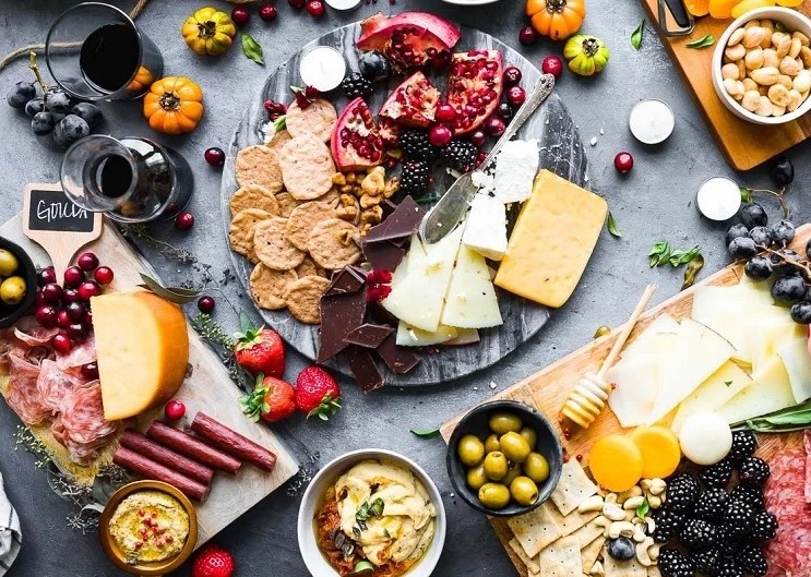 - 1. Контрасты — ваши лучшие соратники. Хрустящие чипсы с мягким сыром, сладкие фрукты с соленой ветчиной, острый соус с нейтральными овощами — чем больше контрастов, тем интереснее получится закуска.