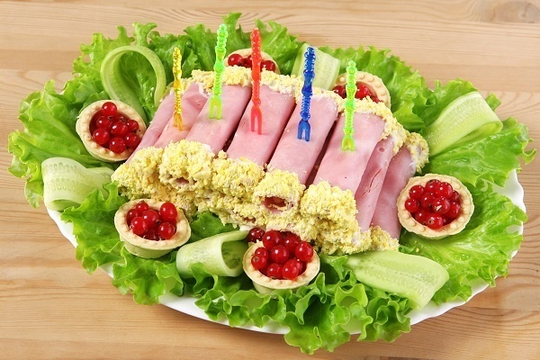 - Рулетики из ветчины с сюрпризом: В этом блюде можно спрятать любые начинки — от овощей до сладостей. Готовые рулетики из ветчины или сыра станут предметом весёлых догадок!