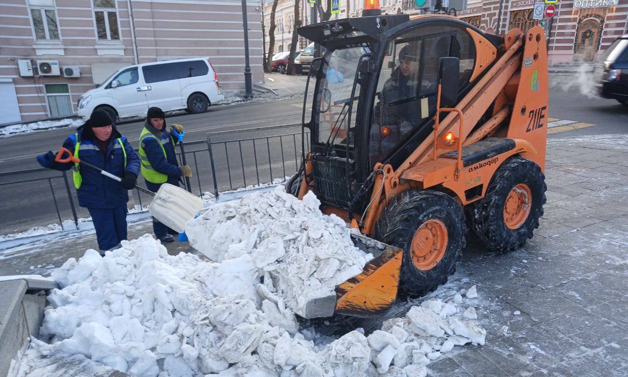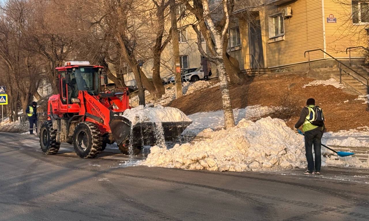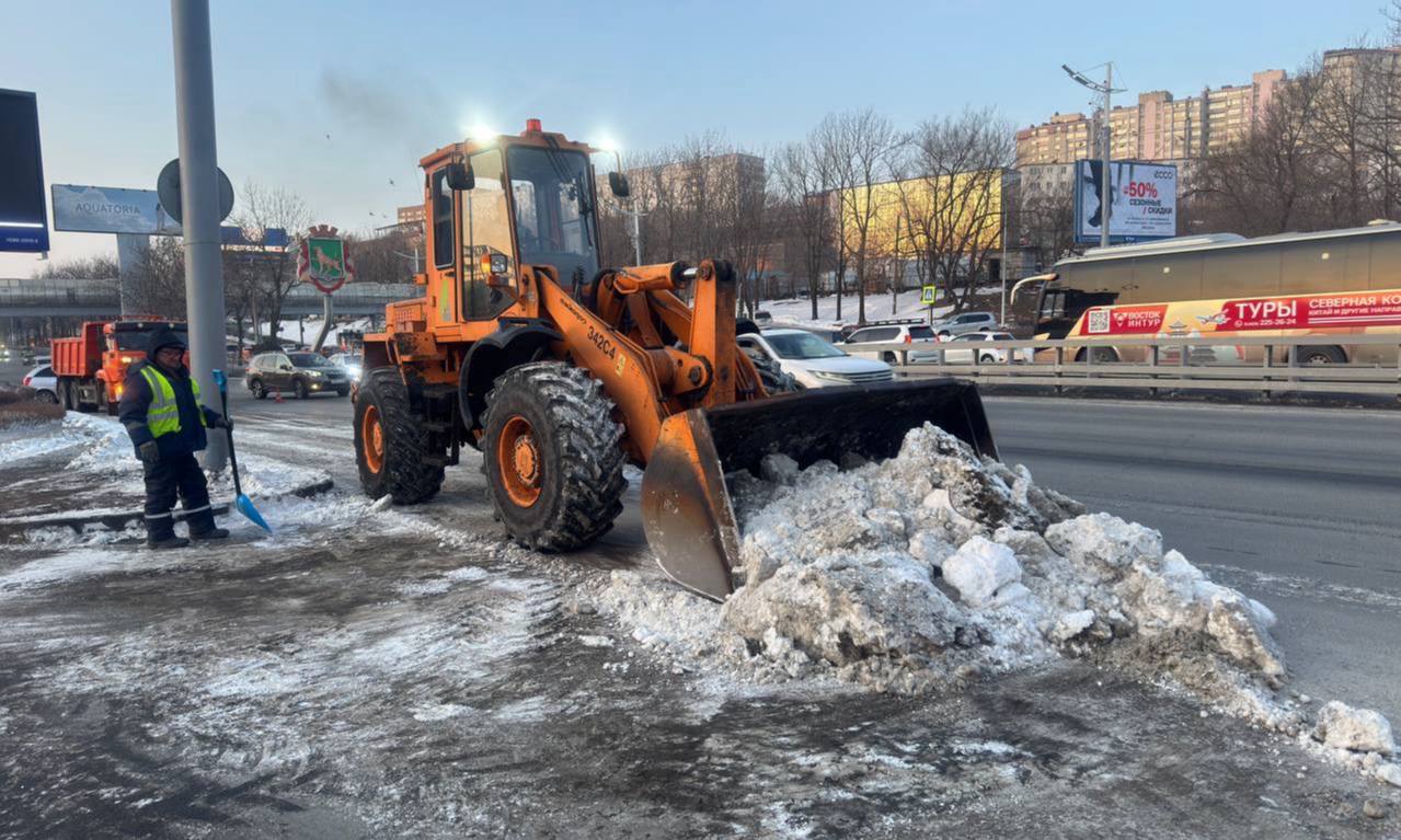 Советский район — очистка тротуаров на проспекте 100-летия Владивостока и улице Десятой; вывоз снега с проспекта 100-летия Владивостока и улицы Маковского.